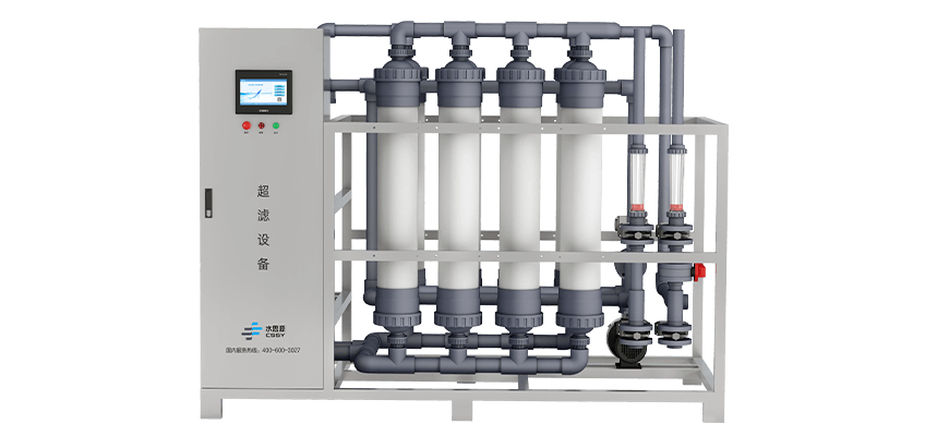 超濾(Ultra-filtration, UF)是一種能將溶液進(jìn)行凈化和分離的膜分離技術(shù)。超濾膜系統(tǒng)是以超濾膜絲為過濾介質(zhì),膜兩側(cè)的壓力差為驅(qū)動力的溶液分離裝置。超濾膜只允許溶液中的溶劑(如水分子)、無機(jī)鹽及小分子有機(jī)物透過,而將溶液中的懸浮物、膠體、蛋白質(zhì)和微生物等大分子物質(zhì)截留,從而達(dá)到凈化或分離的目的。